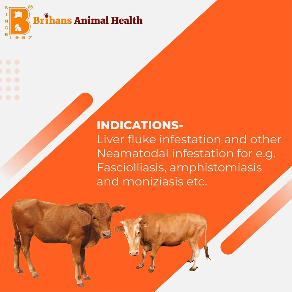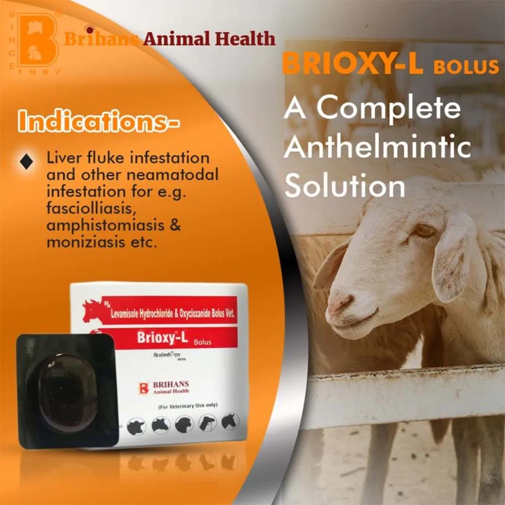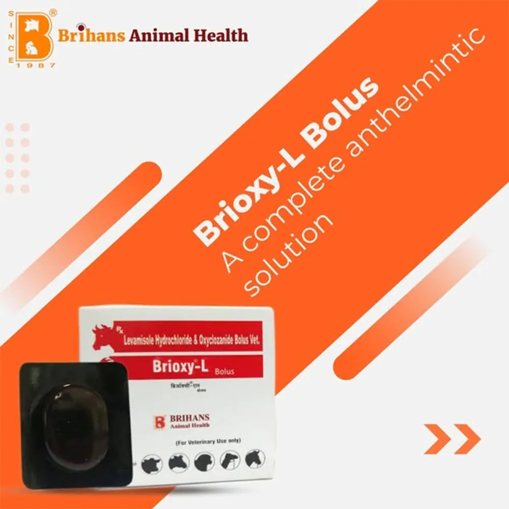 Brioxy-L Bolus is an anthelmintic medication formulated for cattle and sheep to combat liver fluke and various nematode infestations, including fascioliasis, amphistomiasis, and monieziasis.