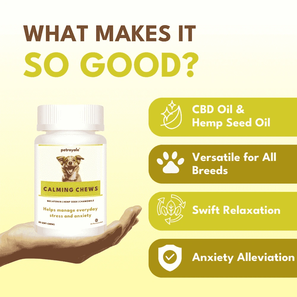 Good Alternative To Sedatives: Our unique formula is expertly crafted to help your dog manage stress triggered by various situations, such as thunderstorms, fireworks, travel, vet visits, grooming, or separation anxiety. Calming Chews provide effective stress management, enabling your furry friend to handle challenging situations with ease. Natural Solution: These easy-to-feed, palatable chews provide quick relief and are made with hemp seed oil, hemp seed extract, and chamomile. Free from sedatives, your pet won’t experience drowsiness or mood changes.