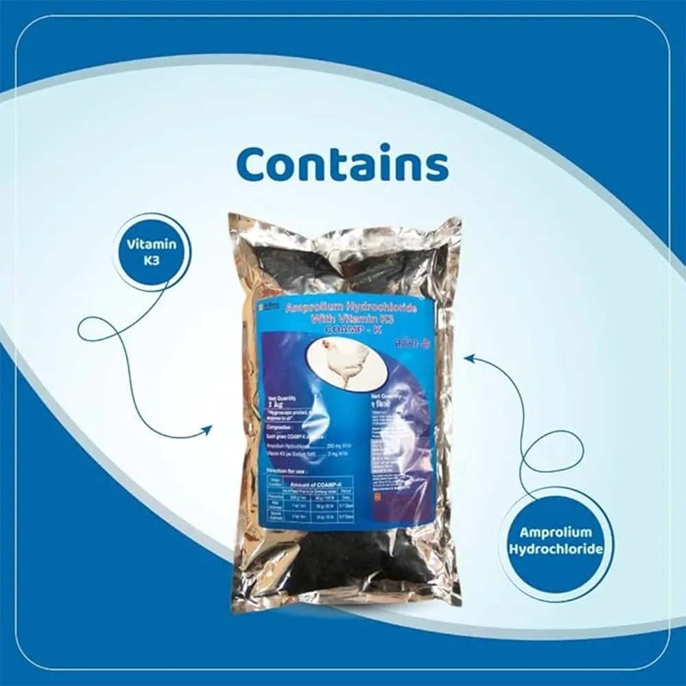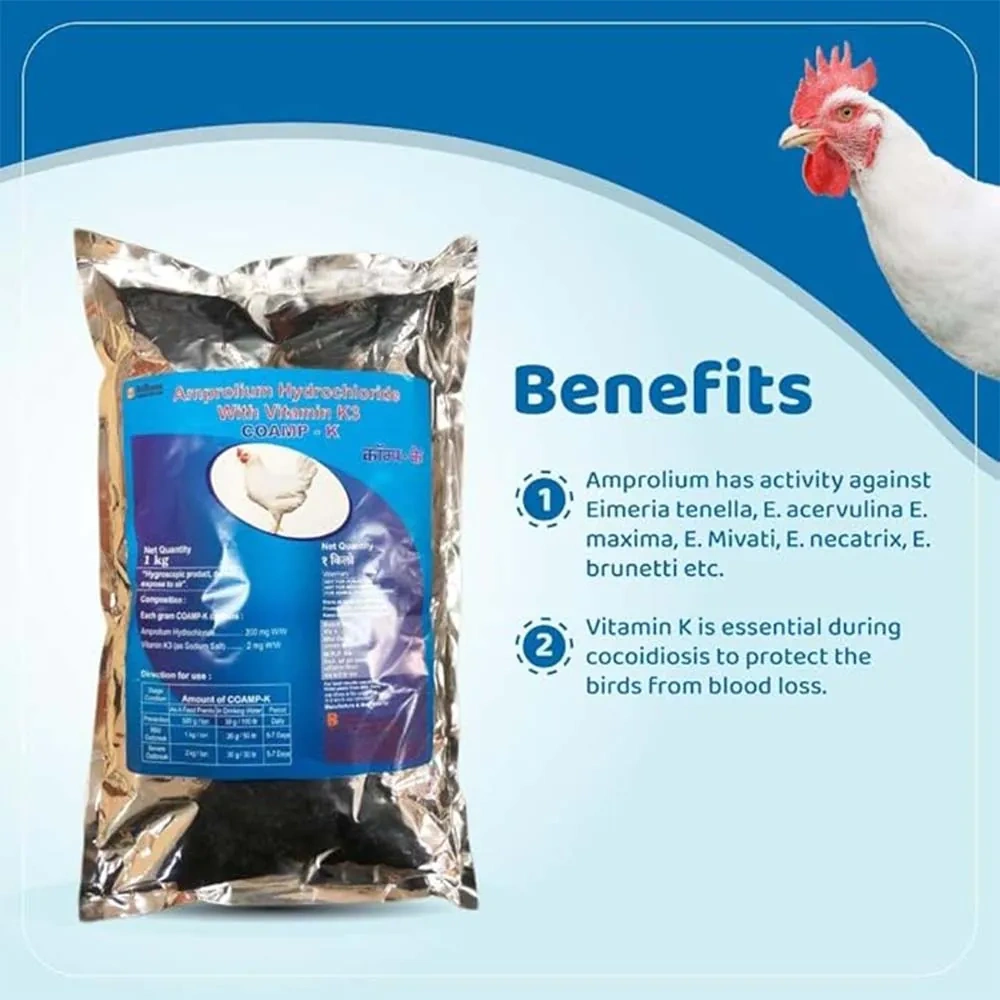 - TREATMENT OF COCCIDIOSIS: Brihans Animal Health’s Coamp-K provides a comprehensive solution for managing coccidiosis in poultry, addressing both prevention and treatment needs. With its ability to combat major causes of coccidiosis, mitigate blood loss, and support overall flock health.