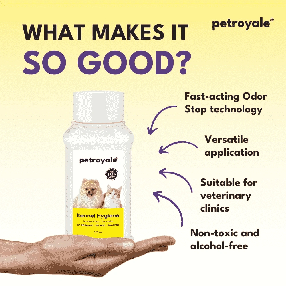 Non-Toxic and Alcohol-Free: PETROYALE Kennel Hygiene offers a safe and effective cleaning solution without harmful substances, prioritizing pet well-being while maintaining a toxin-free environment.