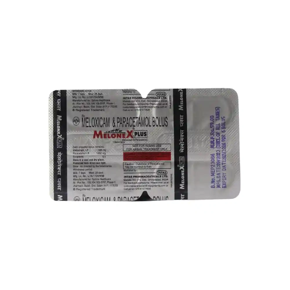 - Broad-Spectrum Use: MELONEX PLUS BOLUS is utilized for a range of pyretic conditions like pyrexia of unknown origin, ephemeral fever, bacterial and viral infections, and piroplasmosis, showcasing its versatility in veterinary medicine.