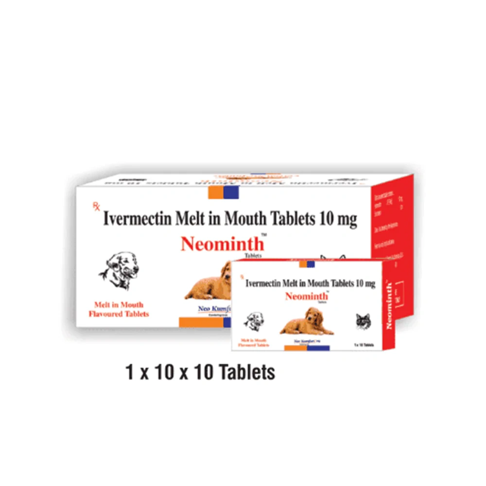 Neominth Tablets are flavored, mouth-melt ivermectin tablets for dogs. They work by inhibiting GABA and glutamate-gated channels of parasites.