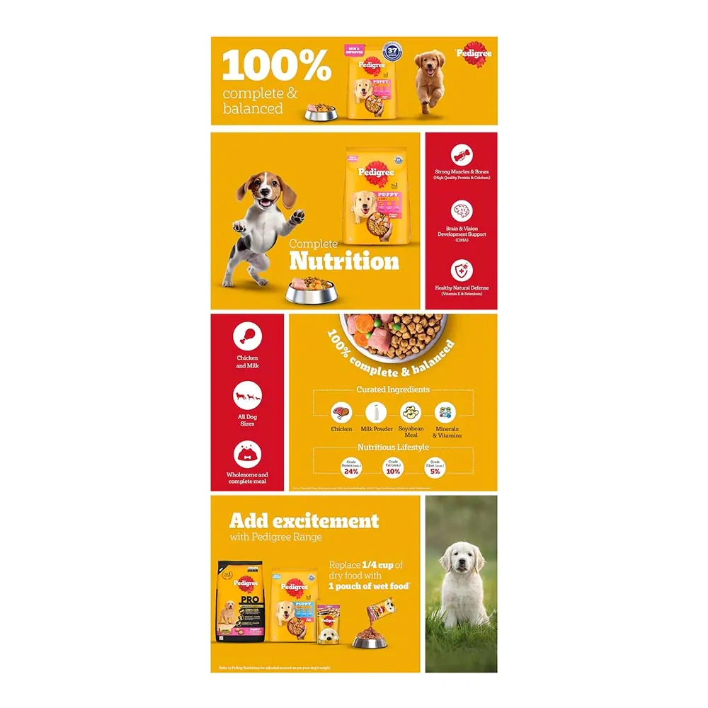 Delicious Chicken and Milk Flavor: Pedigree Puppy Dry Dog Food in Chicken and Milk Flavor is packed with mouth-watering kibbles to delight your puppy.