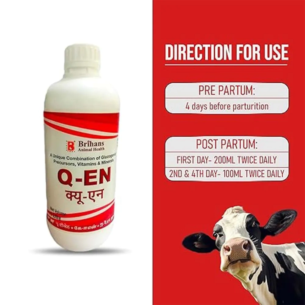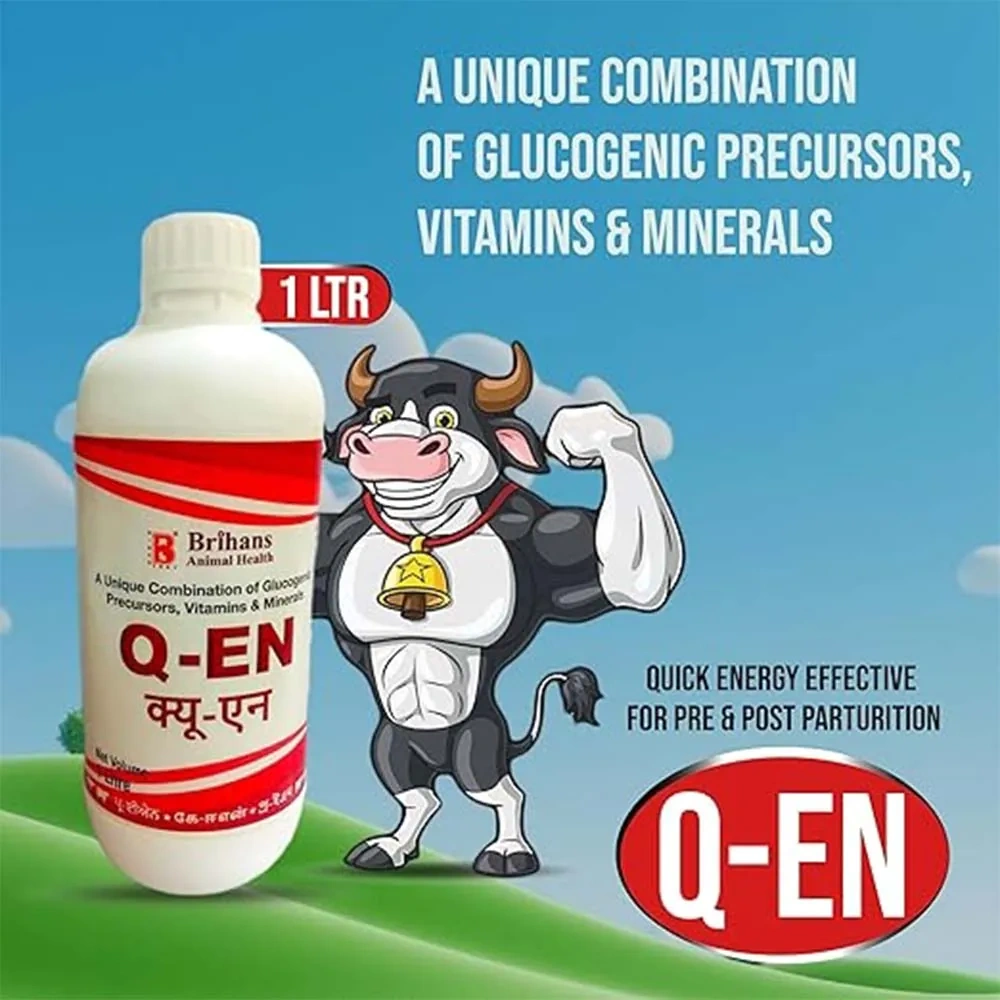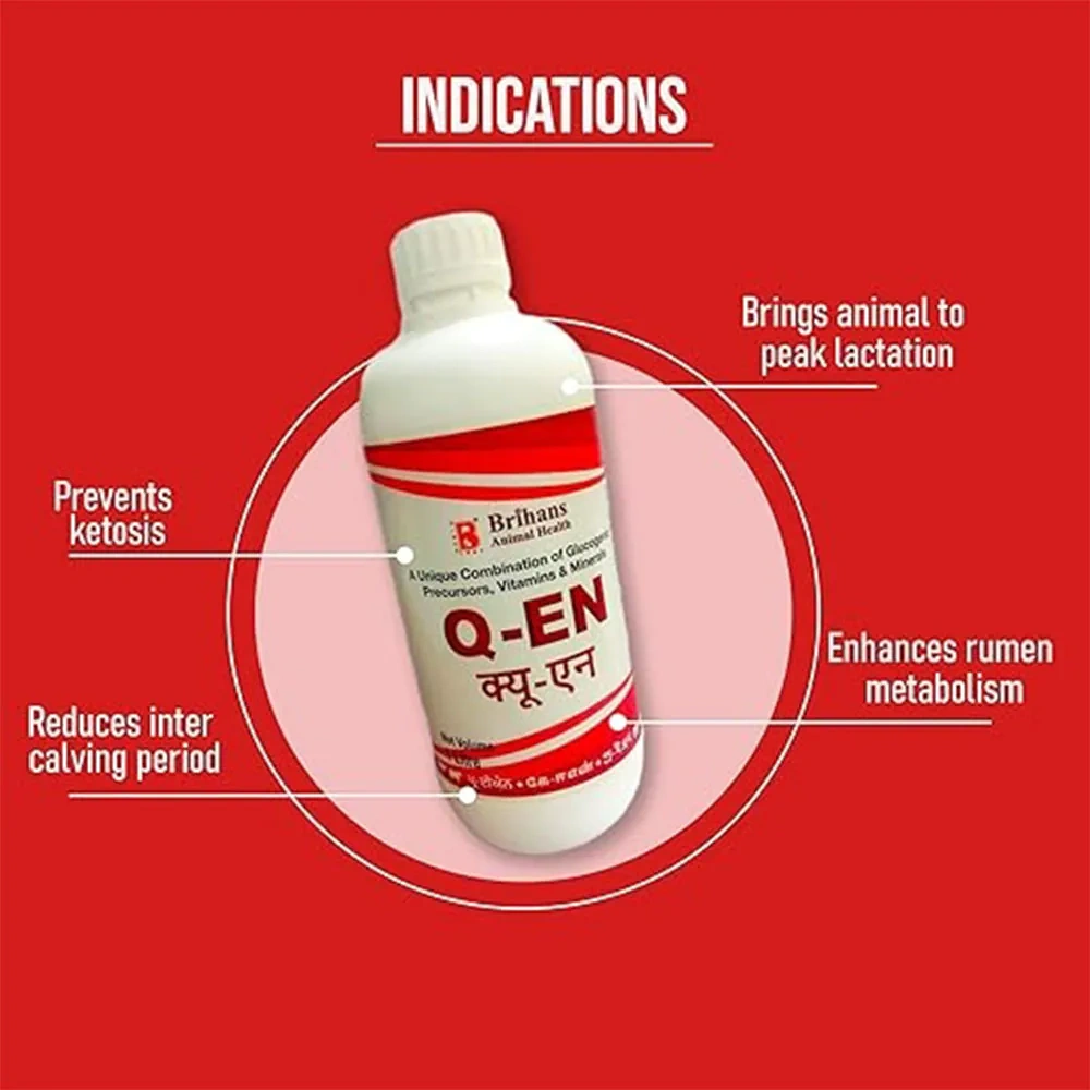 - Improves Rumen Metabolism: Q-EN enhances rumen metabolism, leading to better digestion and absorption of nutrients, promoting overall health and increased milk production in cattle.