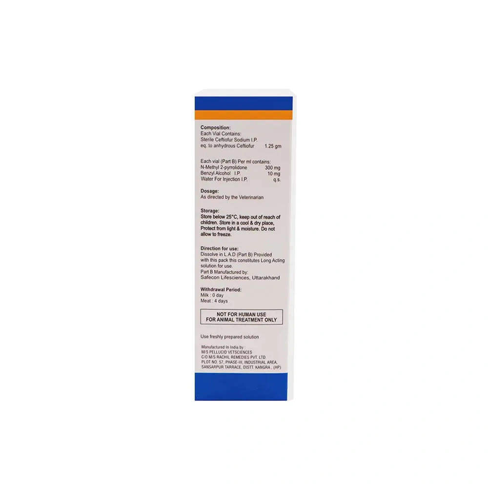 - Dissolve 1.25 g of Ceftiofur Sodium with 20 ml long-acting diluent.