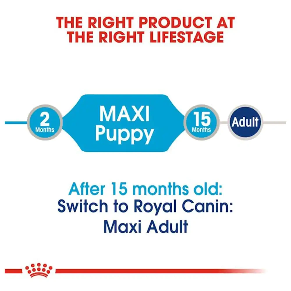 Meat and animal derivatives, vegetable protein extracts, cereals, oils, fats, minerals, yeasts, and various sugars. Designed for large breed puppies (26-44 kg) up to 15 months old to support immune health, digestion, and balanced energy requirements.