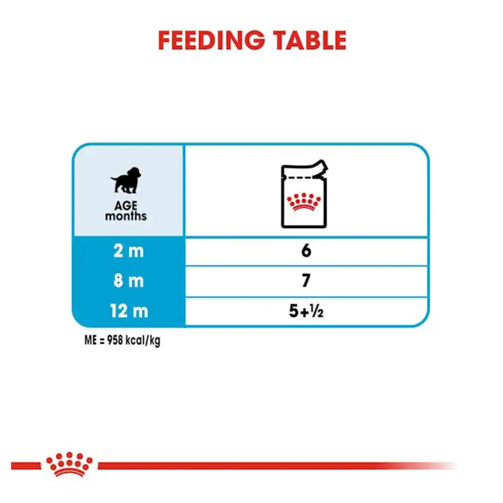 This wet food is designed to provide complete and balanced nutrition for medium-breed puppies up to 12 months old. It includes essential nutrients to support growth, immune defense, digestion, and energy needs. The food is rich in high-quality proteins, vitamins, and minerals to ensure optimal health.