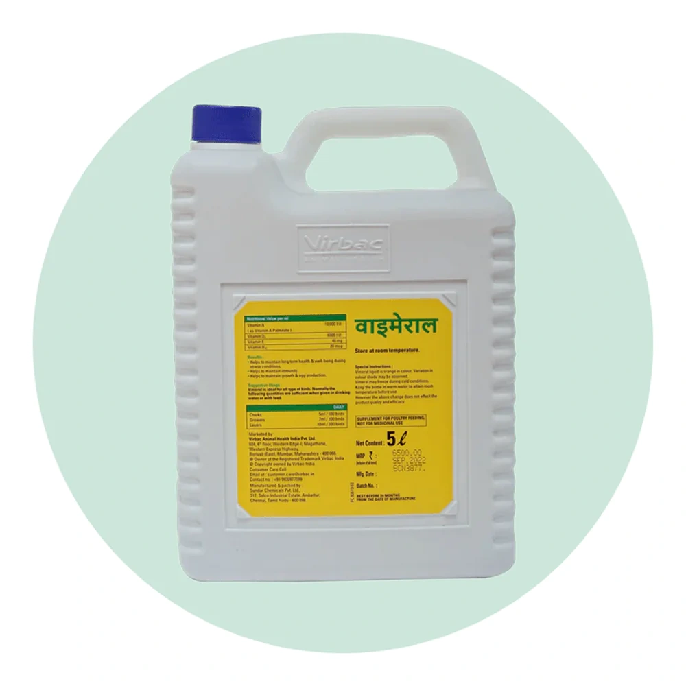 VIMERAL® is Liquid Supplement of Vitamins For Poultry Feeding. Poultry Feed Supplement, Not for medicinal use. VIMERAL® is Liquid Supplement of Vitamins For Poultry Feeding that provides Vitamin E and Vitamin B12, Vitamin D3 and Vitamin A in palmitate form.