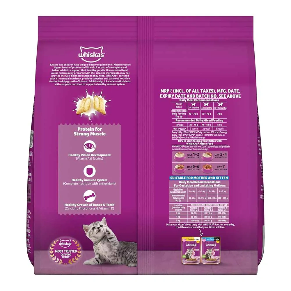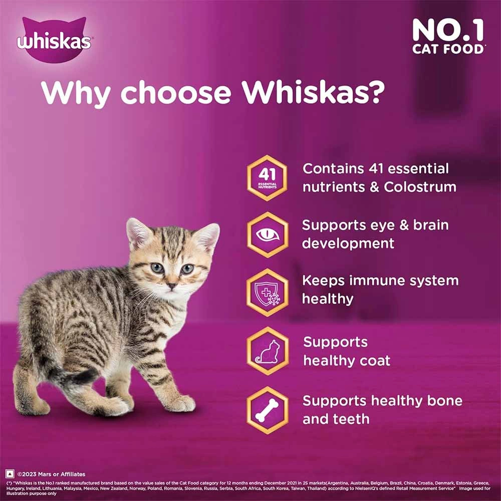 - Delicious Ocean Fish Flavor: Whiskas Kitten Dry Cat Food delights your feline friend with nourishing crunchy chunks infused with the irresistible taste of ocean fish.