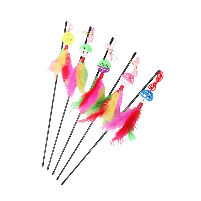 Bell Ball Cat Teaser Stick | Interactive Natural Feather Cat Kitten Toy